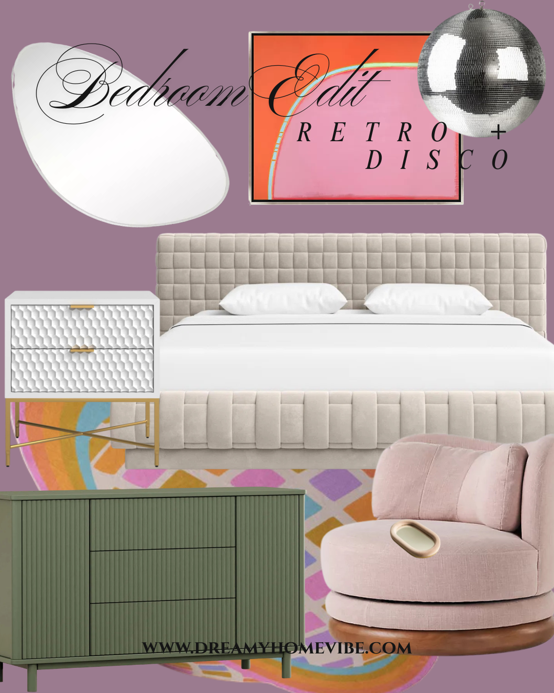 Turn up the sparkle and lean into the groove — this Retro Disco Bedroom Edit is all about bold textures, shimmering details, and a touch of vintage flair. Think Studio 54 meets modern comfort — a space that’s equal parts chic and playful, where velvet, mirror finishes, and curvy silhouettes take center stage. Whether you’re reimagining your entire bedroom or just craving a dash of disco glam, these pieces set the mood for endless good vibes