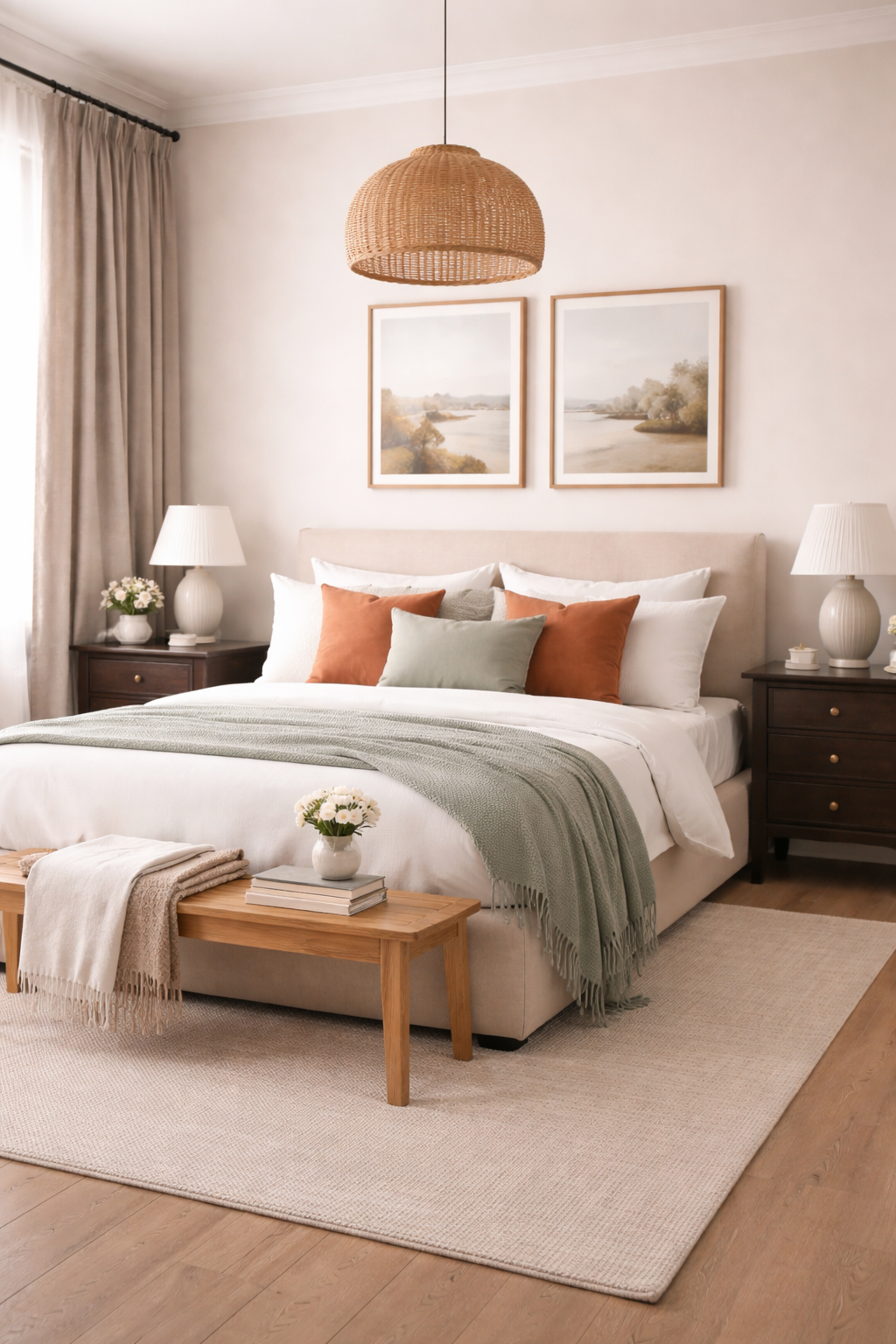 No bedroom palette feels complete without the warmth of a natural material. Whether it’s wood, stone, linen, or metal, this element adds texture and authenticity that color alone cannot achieve.